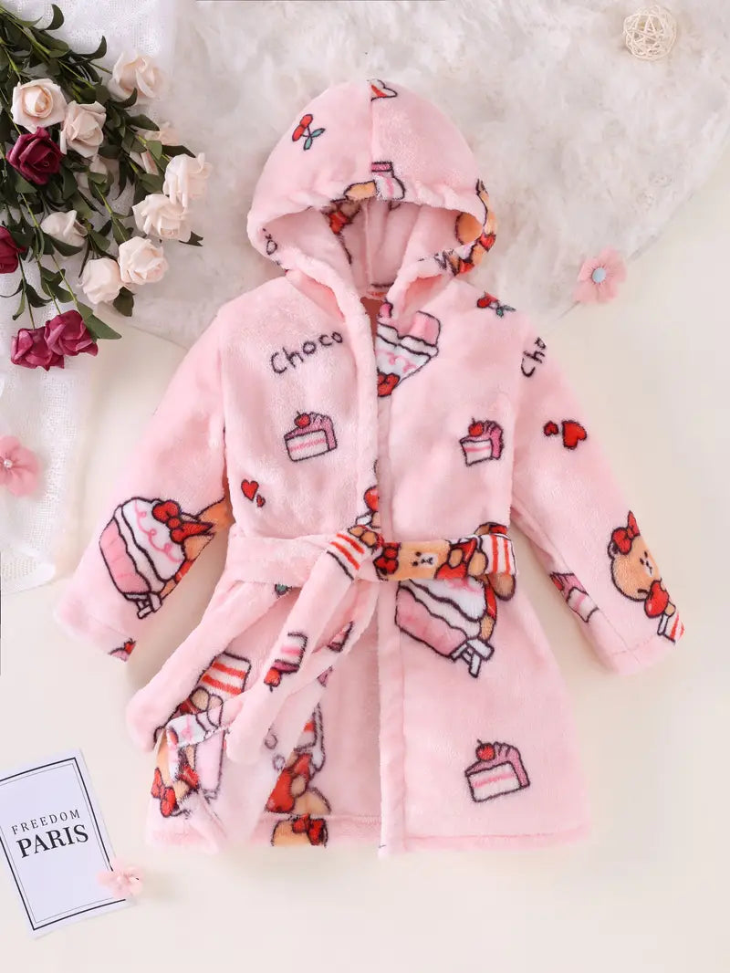 Peignoir de Bain Enfant Rose avec Motif du Gâteau