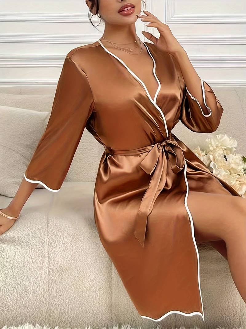 Apportez une touche de douceur à votre quotidien avec ce peignoir court en satin, spécialement conçu pour chaque femme qui souhaite allier confort et élégance. Ce peignoir est idéal pour sortir du bain, offrant une sensation douxe et légère à un prix pas cher. Fait partie de notre collection Peignoir satin femme.