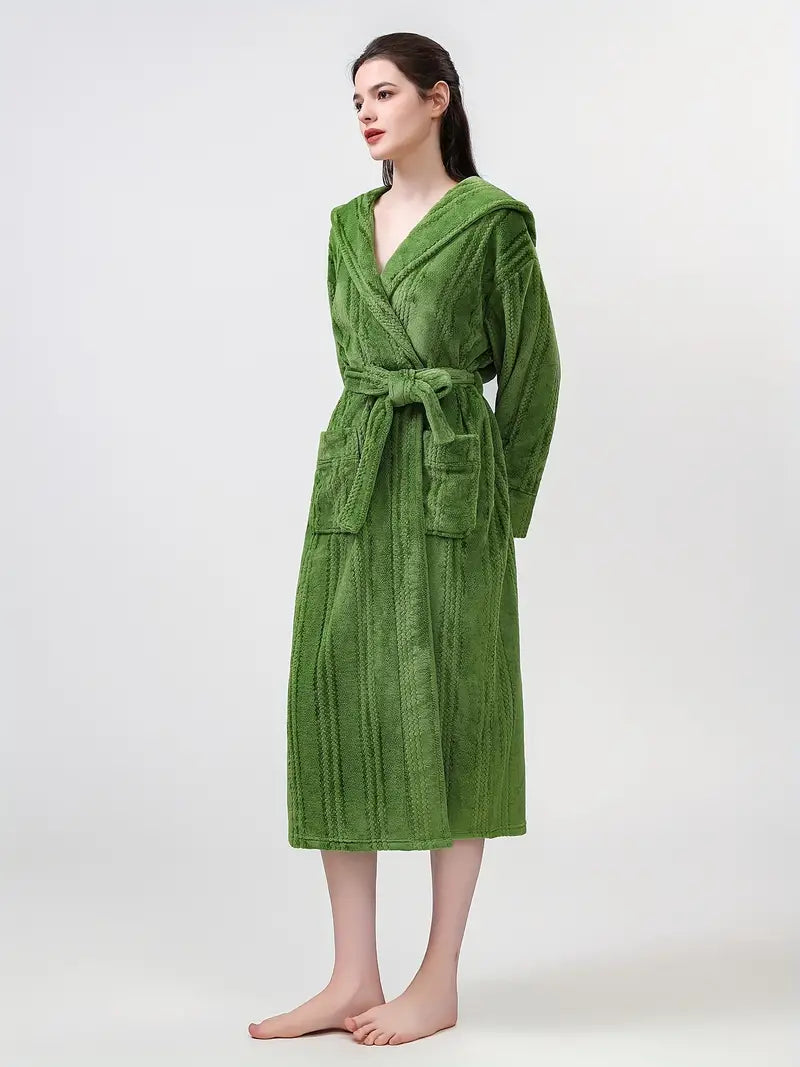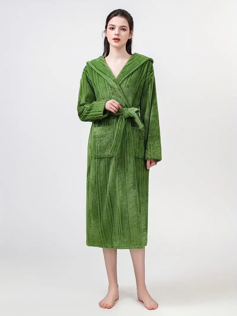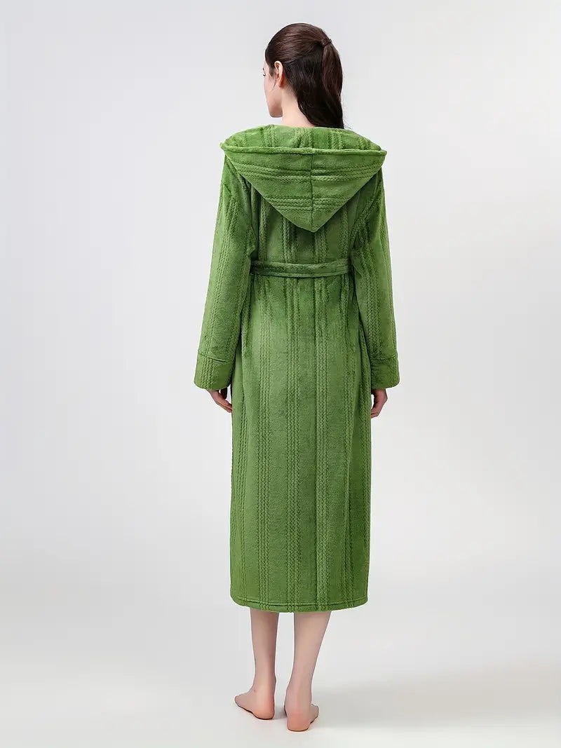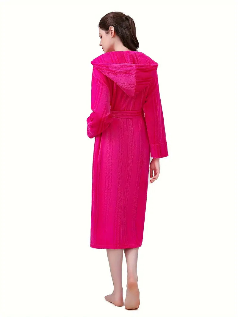 Profitez d'un peignoir long en matière éponge et polaire, idéal pour le bain. Avec sa capuche douce et chaude, il apporte confort et style. Collection Peignoir femme.