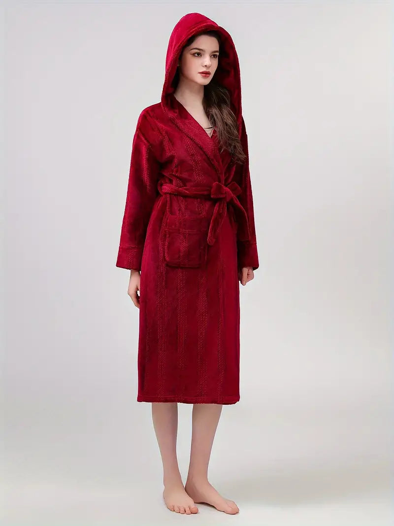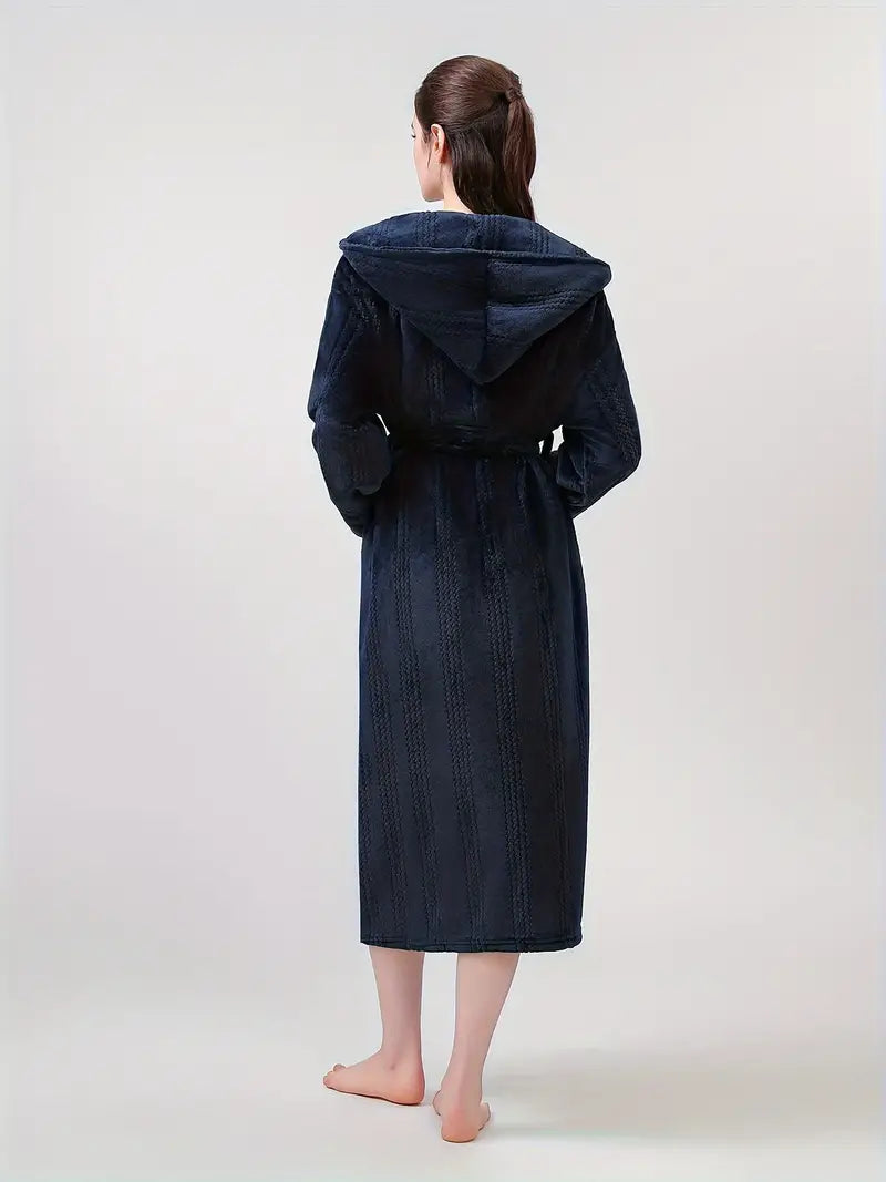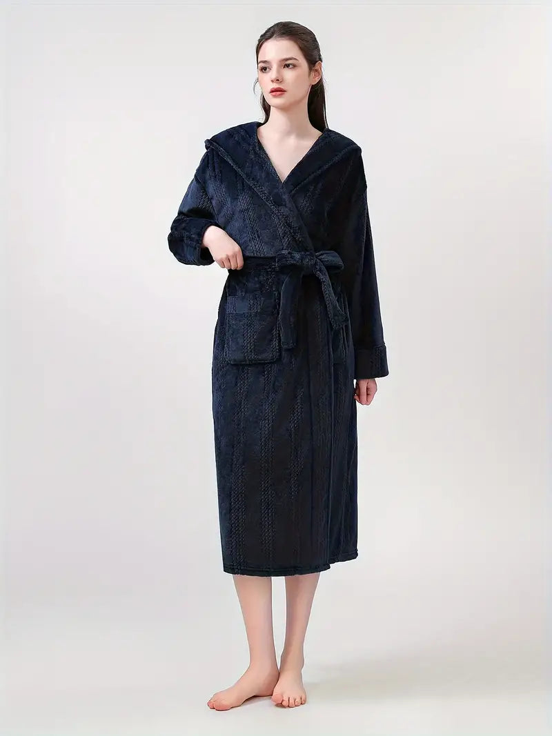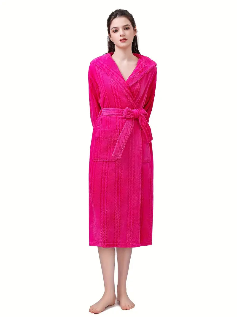 Profitez d'un peignoir long en matière éponge et polaire, idéal pour le bain. Avec sa capuche douce et chaude, il apporte confort et style. Collection Peignoir femme.