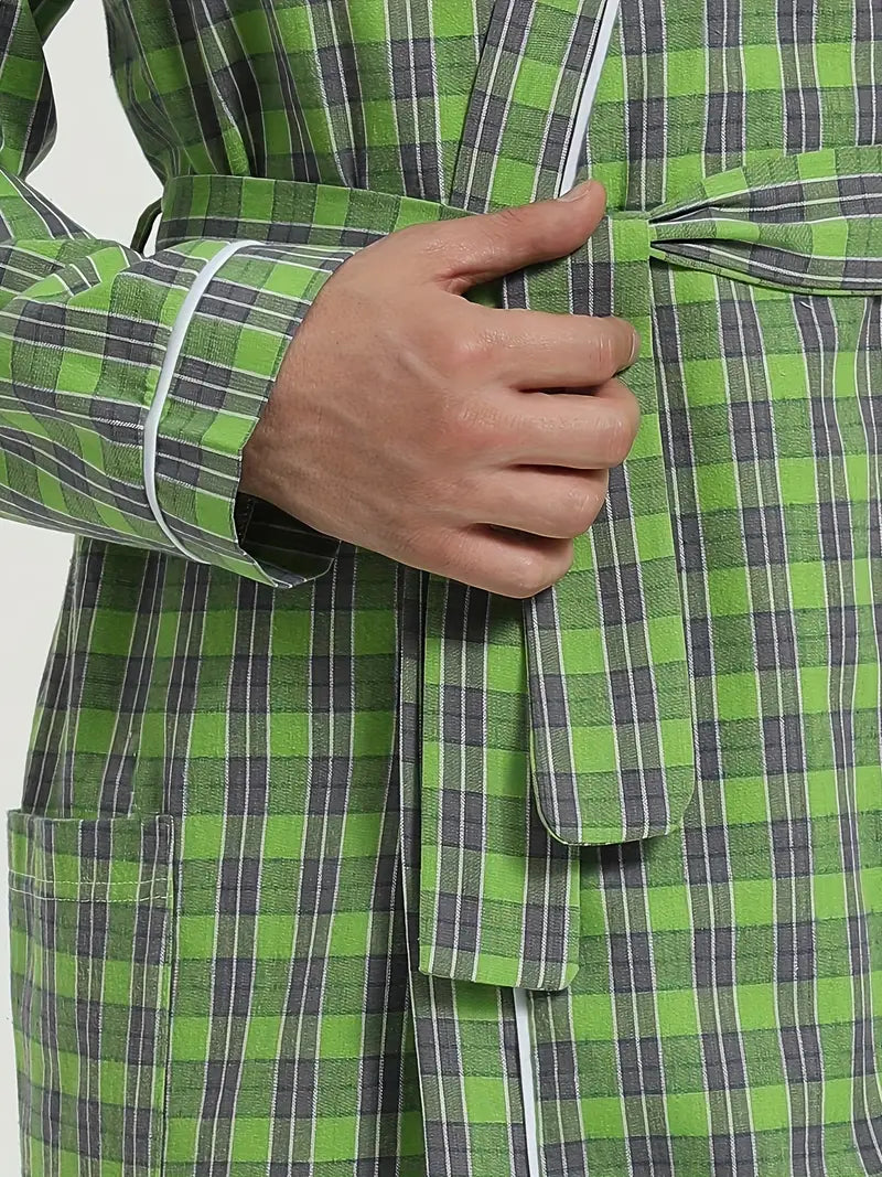 Peignoir de Bain Vert À Carreaux en Coton 420g/m²