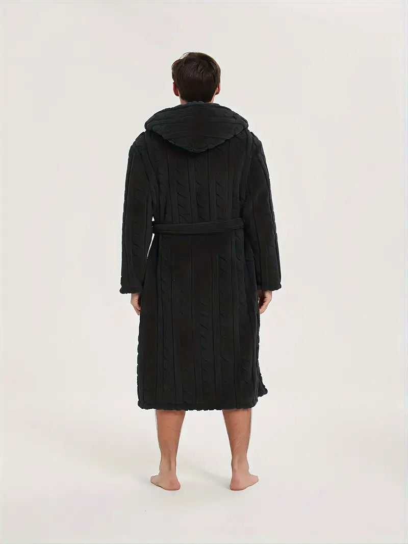 Plongez dans un cocon de confort avec ce peignoir d'hiver à capuche pour hommes. Fabriqué en éponge de qualité supérieure et doublé en polaire, ce peignoir long vous enveloppe dans une chaleur douce et apaisante. Collection Peignoir homme.