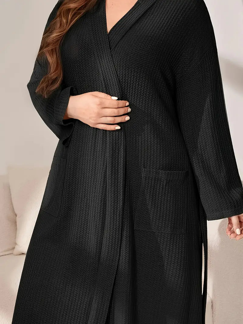 Peignoir grande taille noir en coton 400g/m². Vêtement d'intérieur pratique et fonctionnel après la douche.