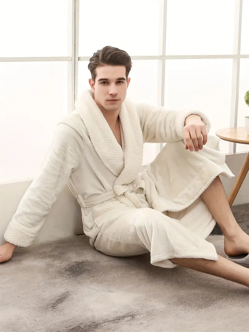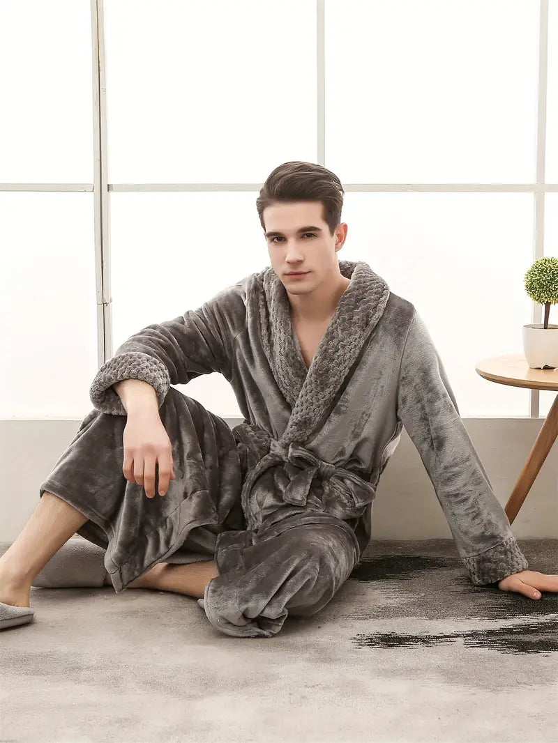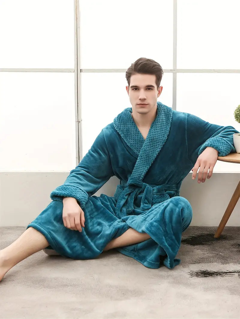 Peignoir d'hiver en polaire épaisse. Vêtement d'intérieur conçu pour une utilisation après la douche.