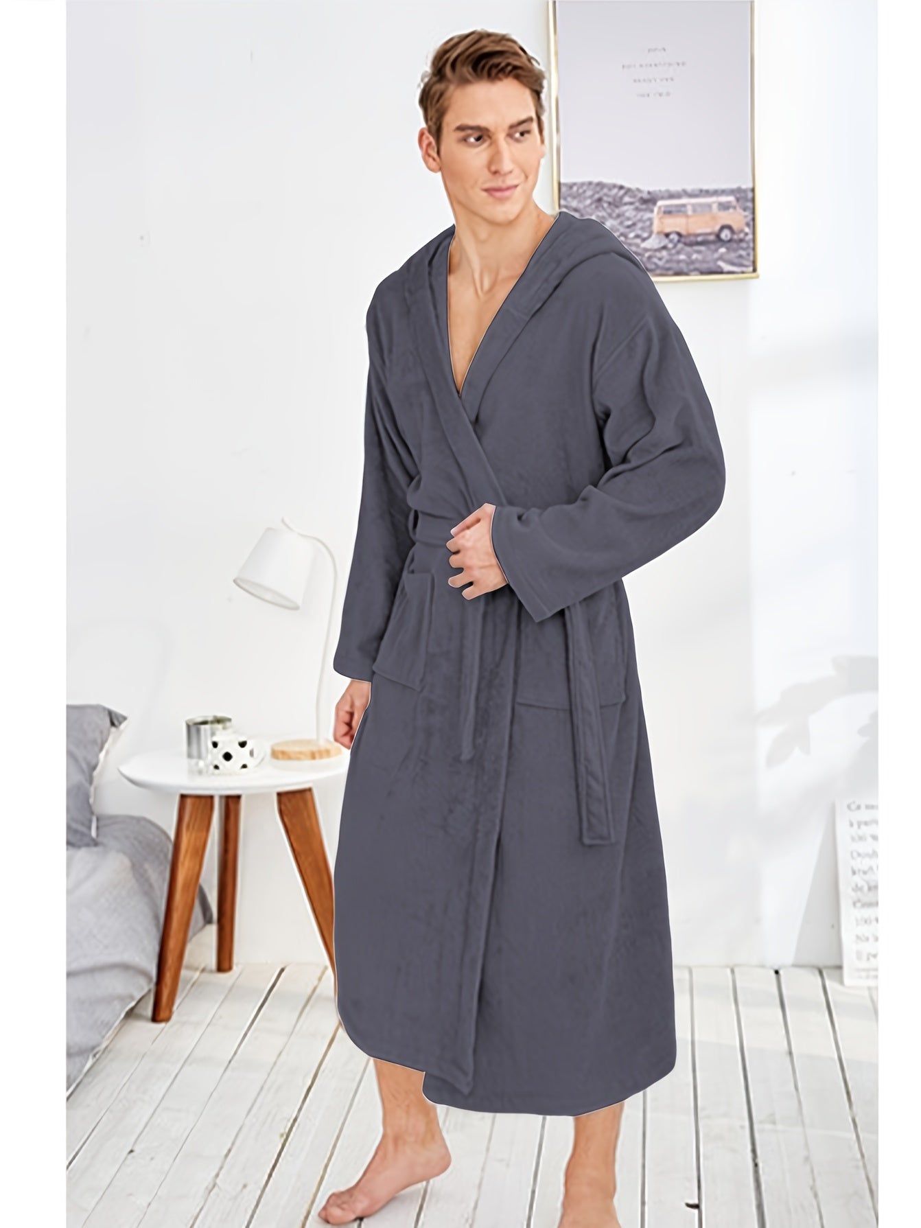 Peignoir homme à capuche en polaire douce avec poches et ceinture