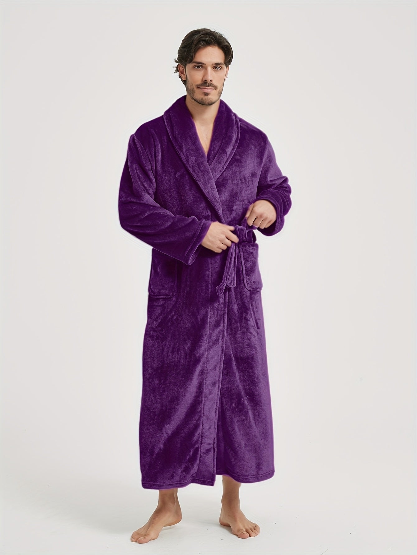 Peignoir homme polaire longue coupe avec col châle