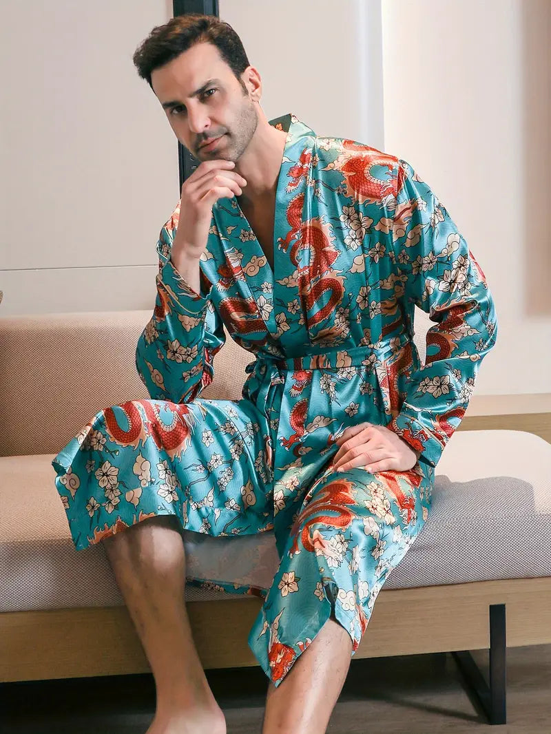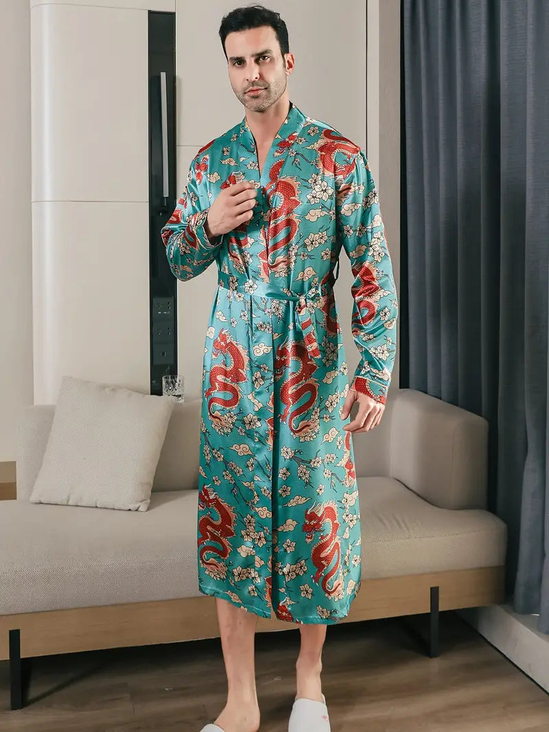 Peignoir de Luxe Turquoise à Motif De Dragon